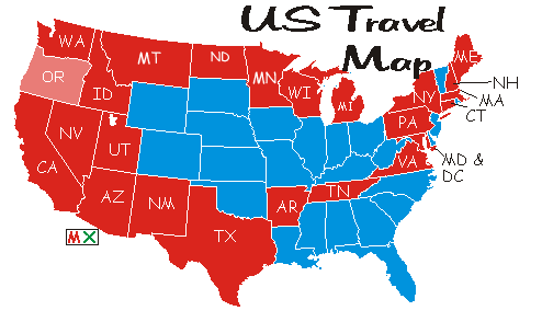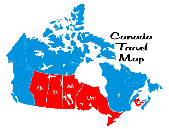 Click on any of the red states or provinces on the travel maps below to see what we are up to.